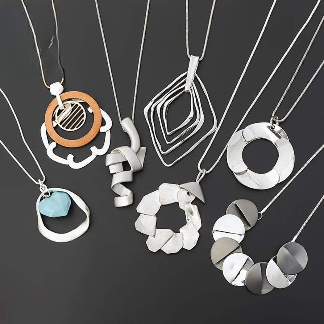 Women's Geometric Christmas Gift Gold Color Silver Color Suspension Collares Necklace with Pendants Trending Products Jewelry