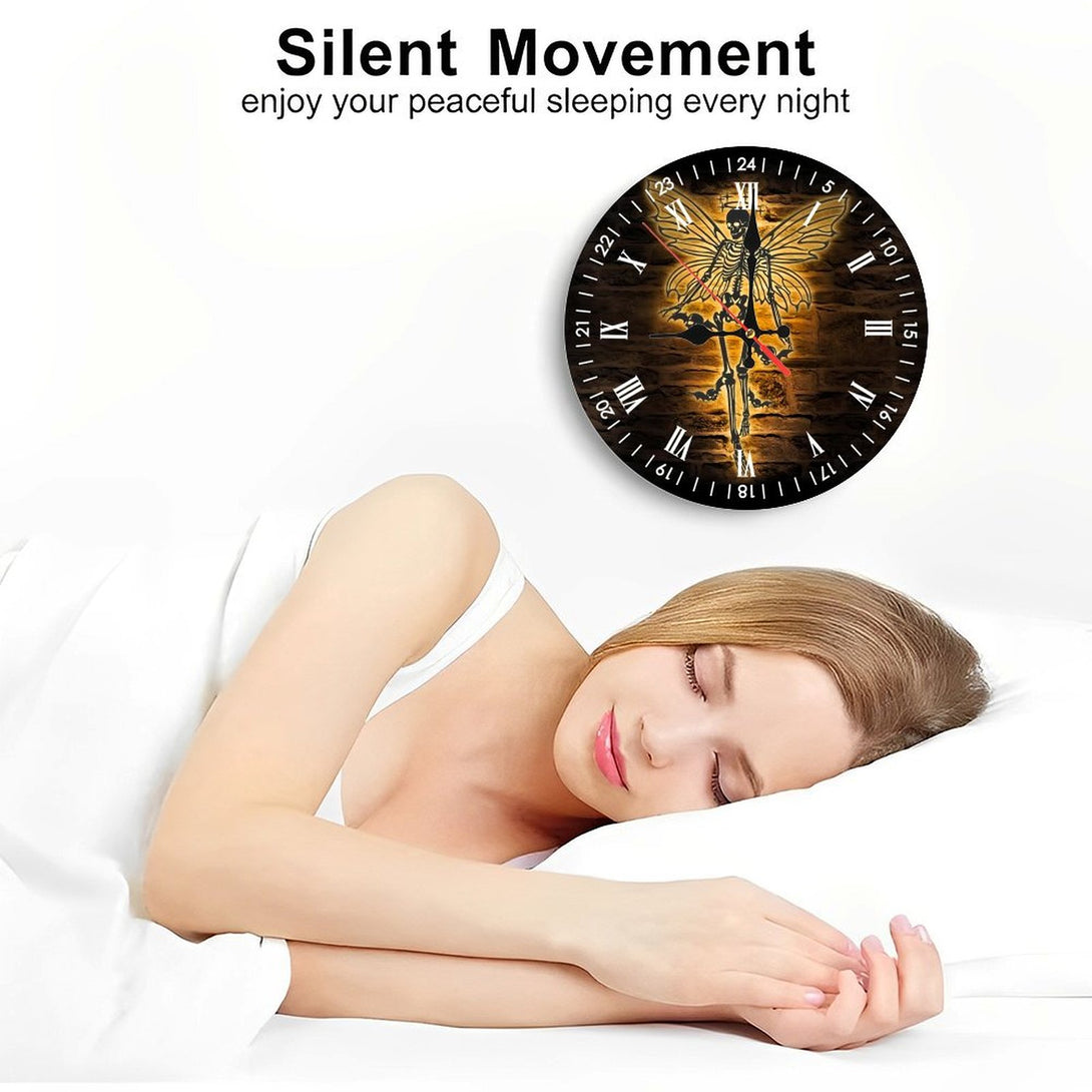 Wood Skeleton Fairy Skull Wood Wall Clocks, Gothic Princess Wood Wall Clocks, Decoration Fairycore Aesthetic Halloween Home Decor Birthday Housewarming 10×10inch(25×25cm)