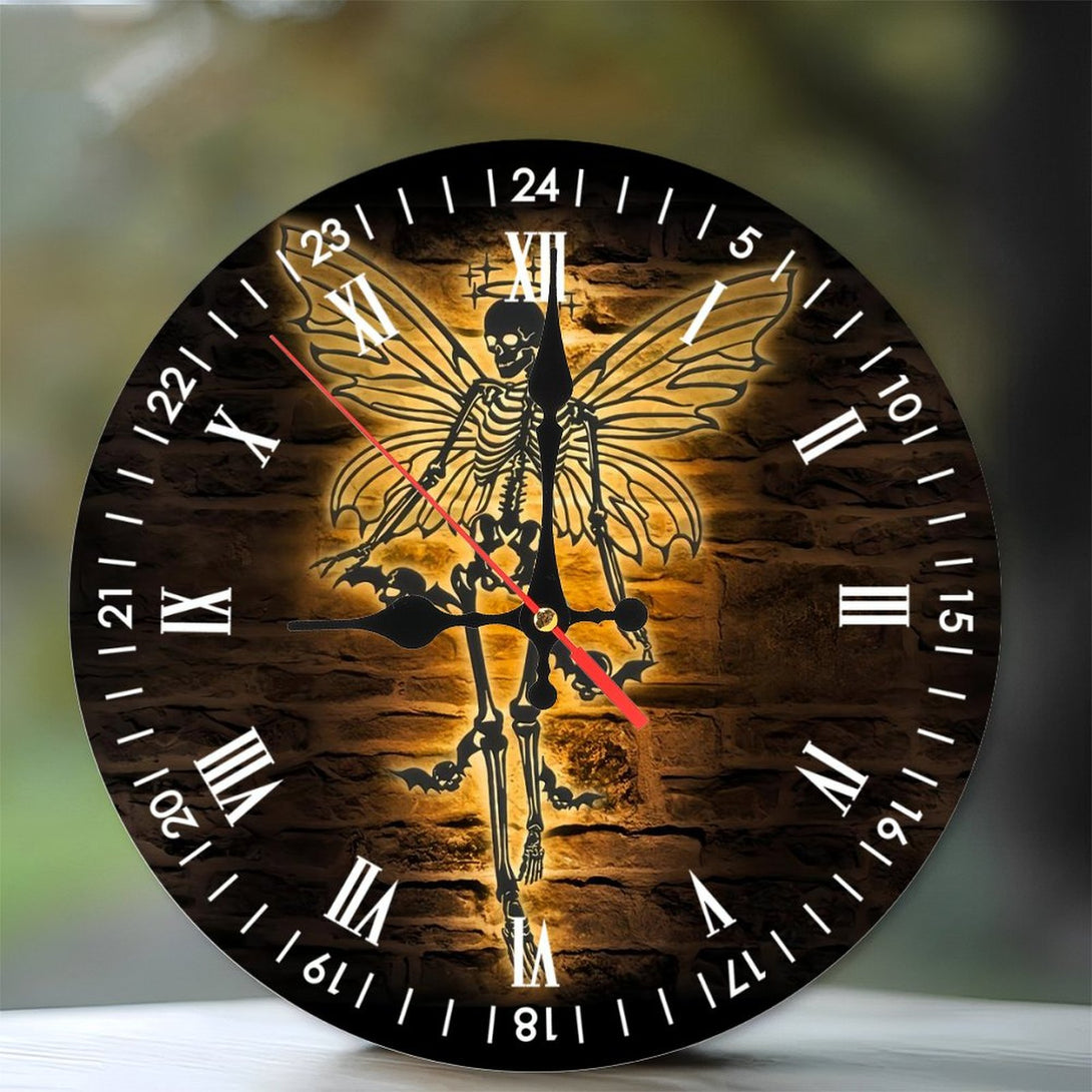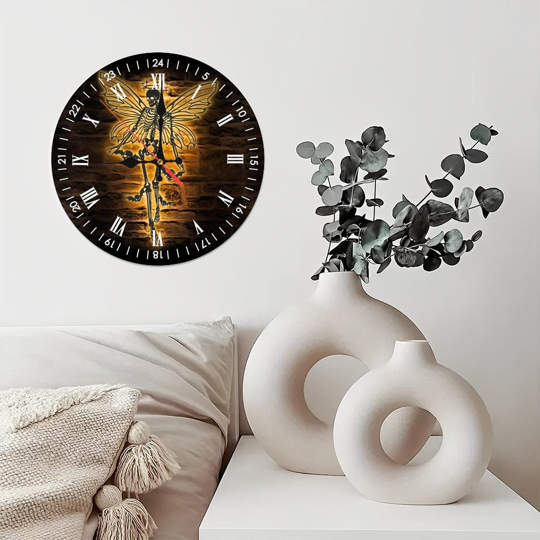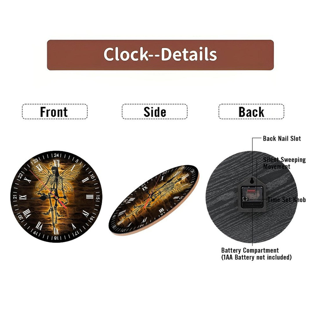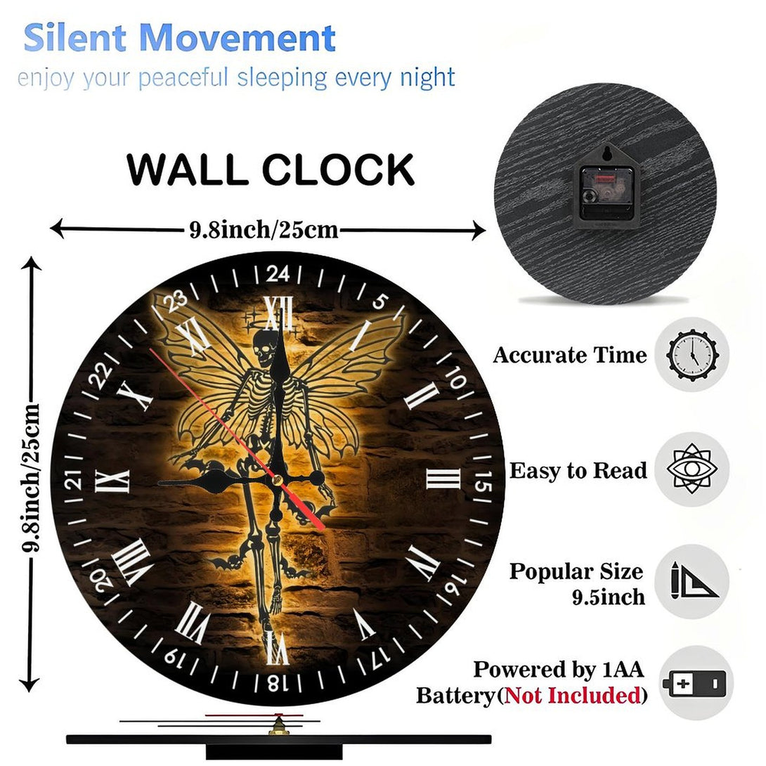 ,Skeleton Fairy Skull Wood Wall Clocks, Gothic Princess Wood Wall Clocks, Decoration Fairycore Aesthetic Halloween Home Decor Birthday Housewarming