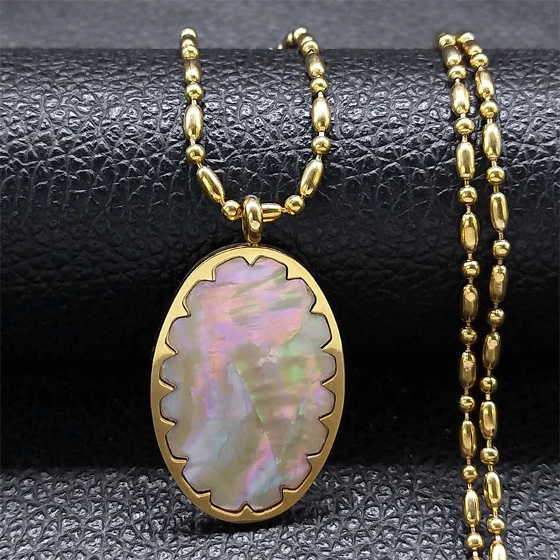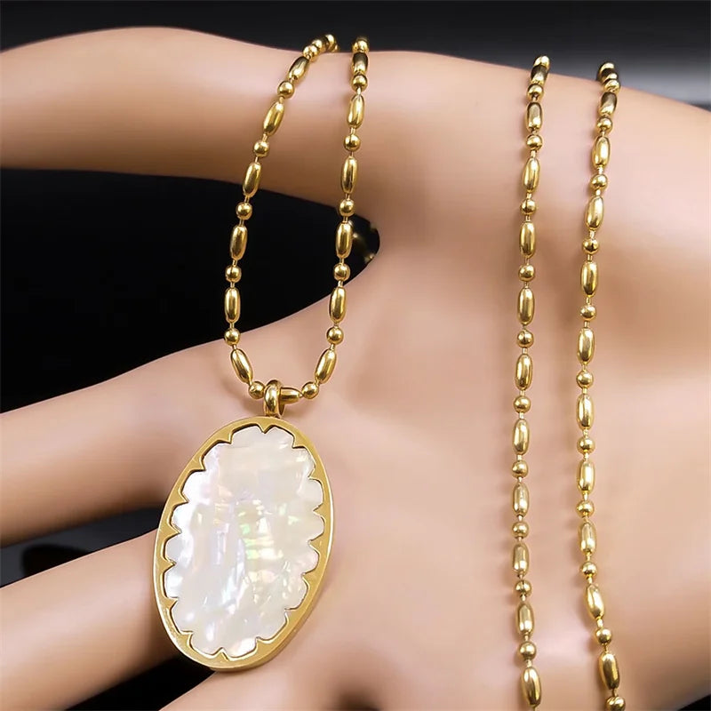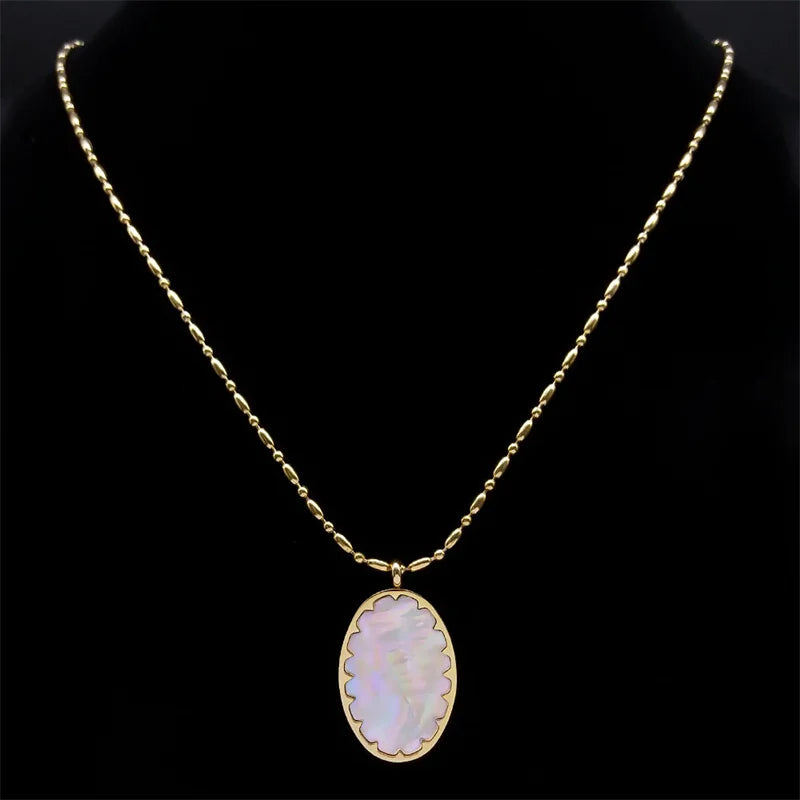 Pink Necklace for Girl Shell Stainless Steel Gold Color Aesthetic Elegant Clavicle Chain